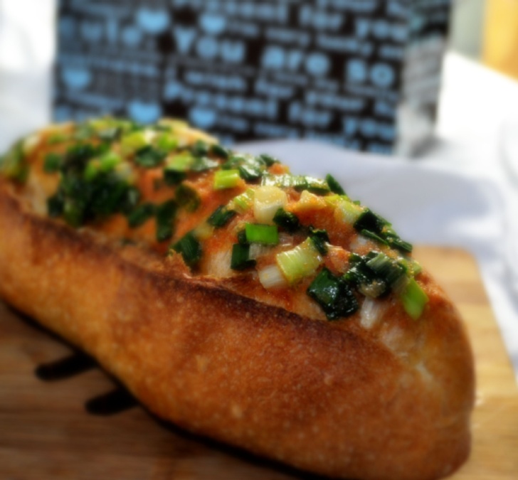 一口咬下先是外酥內軟的法國麵包,再席捲而來的是有著大海的鮮味與台式香蔥味道,鹹酥又香濃的讓人欲罷不能~