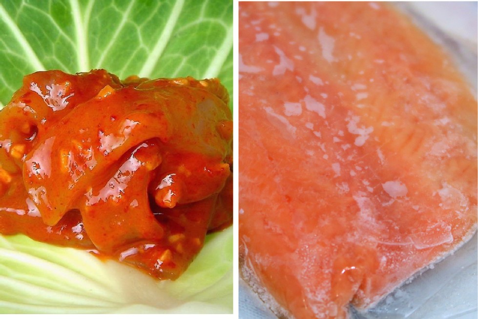 若是已解凍,則由沒有帶皮的那一面(即肉)開始烤。
