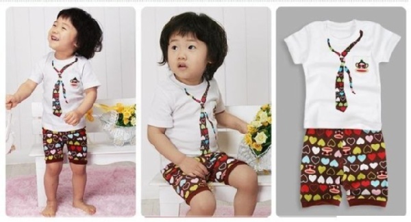 愛心假領帶款短袖套裝 90/100/110/120/130 挑款,一手5套,p190
