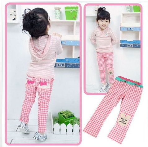 格子蝴蝶結春款長褲尺碼3 4 5 6 7T(90-130CM)