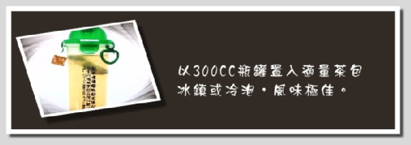 5.以300CC瓶罐置入適量茶包冰鎮或冷泡,風味極佳。