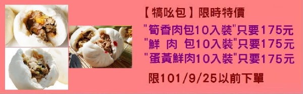 ![]() | 筍香肉包 ※招牌肉包※ 新鮮上等豬後腿瘦肉搭配新鮮竹筍與 蔥加上阿嬤流傳下來的獨特佐料 | 25元 | 約120公克 | 葷 | |