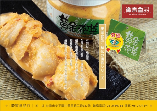 在台南府城努力耕耘的「慶家-黃金泡菜」,請認明製造商及產品名