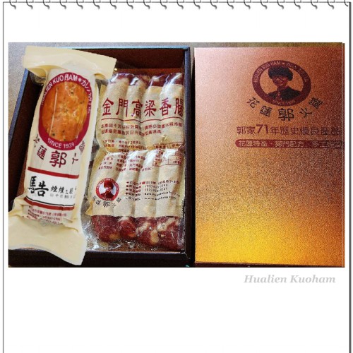 花蓮郭火腿特色係採郭家祖傳獨門配方醃製,且堅持手工炭烤及檜木屑煙燻,全部製程費時3個半小時,始完成風味獨特、口感極佳之手工煙燻火腿。花蓮郭黑豚火腿係嚴選東部頂級黑毛豬後腿肉部位,其肉色澤紅潤,肉質緊實富彈性,油脂分佈均勻,並選用喜馬拉雅山天然玫瑰岩鹽調味,帶出黑毛豬肉的鮮美香甜,且堅持手工炭火烘焙,再以進口核桃木屑低溫煙燻,成就極品黑豚火腿新鮮甜美肉香與天然燻香味。花蓮郭火腿不添加防腐劑,產品出爐冷卻後隨即真空包裝、冷藏儲存,請避免長時間置於常溫環境。亦不添加色素及澱粉類副原料,產品包裝後仍會滲出水份乃正常現象,請安心食用。花蓮郭火腿適合冷食,無須加熱直接切片即可食用,若料理熱食請最後添放,以保火腿最佳檜木煙燻香風味。花蓮郭火腿冷藏期14天(夏日12天,花蓮郭香腸10天),若無法於有效期限內食用完畢,建議先予冷凍(可長達30天,風味不變),依食用量切塊分裝,以保鮮膜包裹火腿加以塑膠袋或牛皮紙緊密包紮,再冷凍儲存,惟解凍後請於7天內食用完畢。