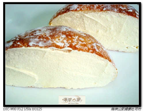 2麵包無需退冰.麵包表面噴少許水,放置烤箱烘烤(烘烤溫度視各家烤箱溫度而定),烘烤3~5分。