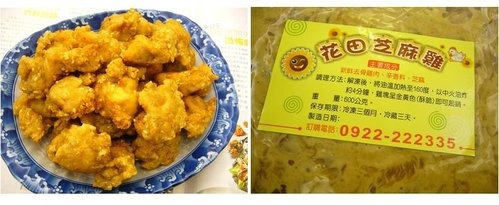 產品說明: | ♡ 團員說粉好吃~ 想再回購的家人快來登記囉! ♡ 原料~新鮮去骨雞肉.芝麻.辛香料. 每包重量~600公克(一台斤). 保存期限~冷凍3個月.冷藏3天. 調理方法~芝麻雞調理方式將芝麻雞自然解凍後倒在盤子內 一開始..開中火..油溫不用過熱.用筷子(像下肉羹的方式)一一撥入油鍋. 將雞塊炸至金黃色.起鍋前轉大火逼油.外皮會呈現酥脆口感芝麻雞可(沾胡椒鹽)單吃.搭配咖哩醬→做成咖哩飯 淋泰式醬汁→做成椒麻雞.也可以跟生菜沙拉搭配.可變換多種口味跟料理~提供大家做參考. |