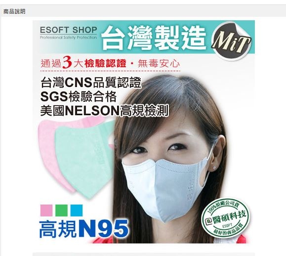 | | 藍鷹牌 成人平面防塵口罩台灣製 三層式不織布(綠色) | 藍鷹牌 成人平面防塵口罩台灣製 三層式不織布(藍色) | 藍鷹牌 成人平面防塵口罩台灣製 三層式不織布(粉色) |