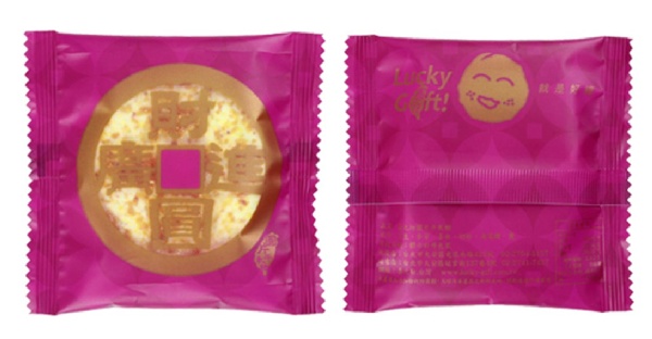 特殊的圓片造型,包覆著像銅錢ㄧ樣的新衣(包裝正面),讓人有收到紅包錢的喜悅感,搭配著會發財的財圓廣進禮盒,給予人滿滿的財寶享用不盡,好運滾滾而來...喜之坊的台灣阿喜(包裝背面),有著最溫暖的台灣造型微笑標誌,讓收到禮盒的親朋好友們都笑呵呵! Lucky Gift 喜之坊-就是好禮!