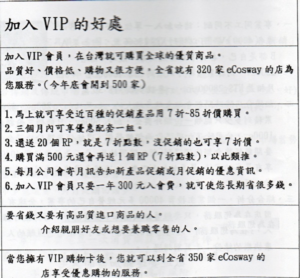VIP 購物者可享有的禮遇:代辦VIP(請留姓名/生日/身份證字號/電話/地址,或面交時填寫入會單)