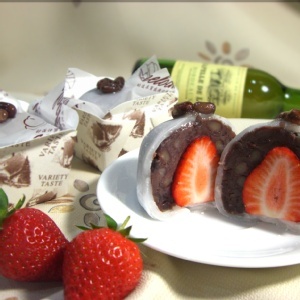 新鮮的大湖草莓加上滿滿的紅豆餡
