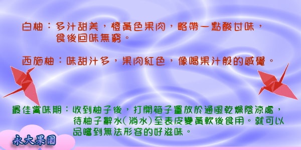 永大果園位於台南麻豆鎮五王廟附近,我們的果園栽種有文旦、紅文旦、白柚、西施柚。