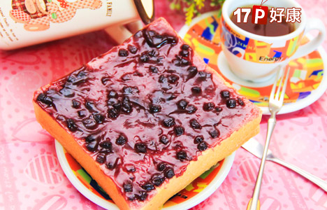 採用進口野生藍莓,厚厚地塗滿在厚片土司上,吃得到顆顆果粒,酸甜滋味