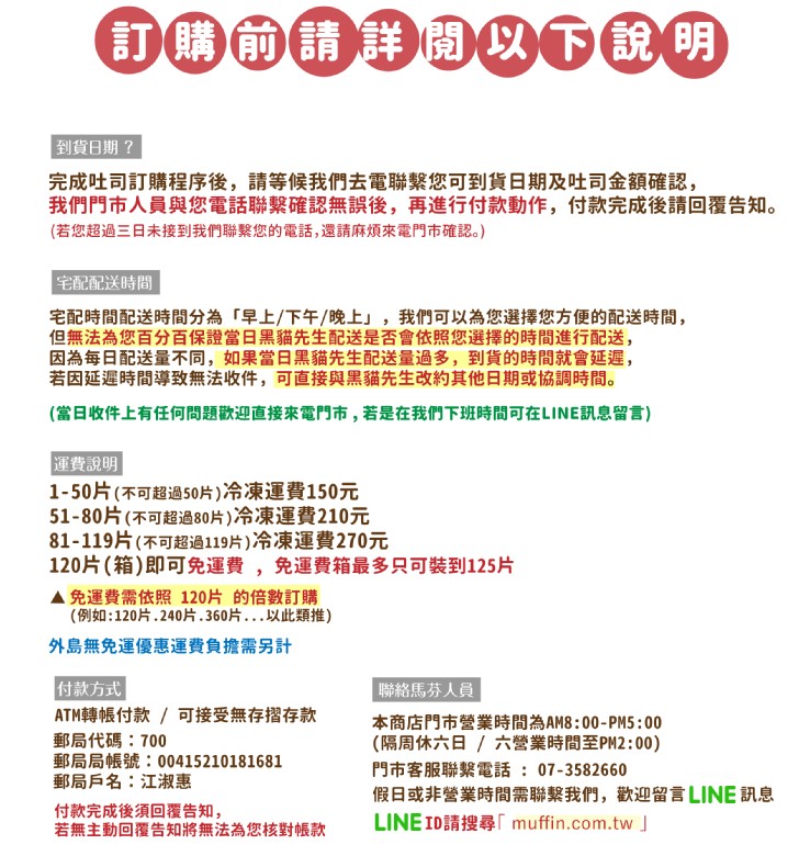 (2)因外島冷凍運費價格非常高,如達120片(本島免運費門檻),