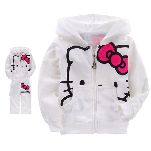 日單卡通Hello Kitty大臉印花白色長袖外套+長褲套裝 $499/套