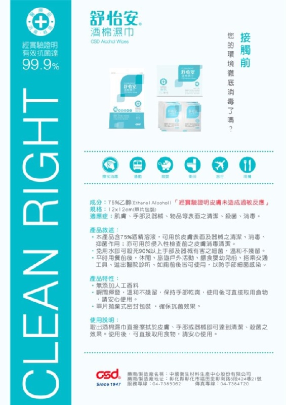 酒棉濕巾 (30PCS/box) (可食用酒精):售價129元/盒