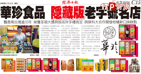 【華珍】於1978年創立於南台灣屏東東港鎮,靠著努力刻苦經營,目前全台享譽盛名。【華珍】所提供的麵包、蛋糕、中西點、早點、煎餅,是由專業人員來製造與管理、選用良好的原材料製造、採用標準的廠房和機器設備、遵照制訂的最佳方法來生產,秉持誠實、純正、品質、衛生及安全五大訴求,提供消費者品質良好、健康營養的食品。本系列商品皆通過HACCP、ISO22000等國際認證,是您絕對可以信賴、安心選用的食品。
