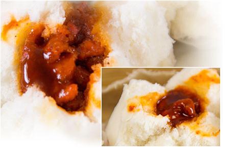 ❍ 香甜美味的叉燒包 以切成小塊的叉燒,加入蠔油等調味成為餡料,外面以麵粉包裹,放在蒸籠內蒸熟而成。叉燒包一般大小約為直徑五公分左右,一籠通常為三或四個。