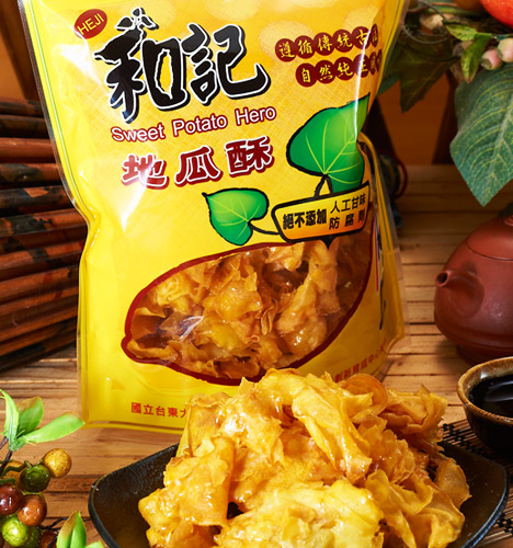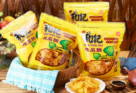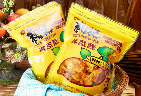 在製作精緻化的地瓜酥時,為了保持地瓜酥薄透的口感,採用了密封袋的設計包裝,不但便於攜帶,更避免受潮的機率,更易保存。