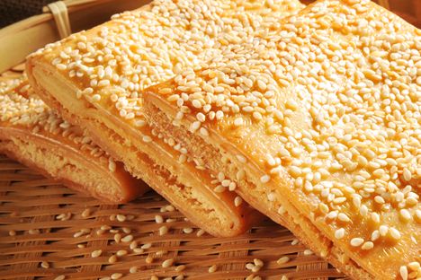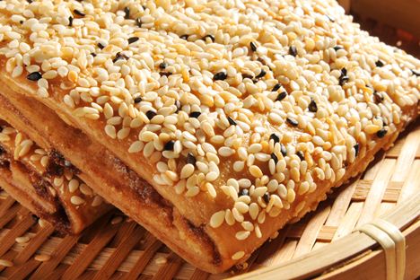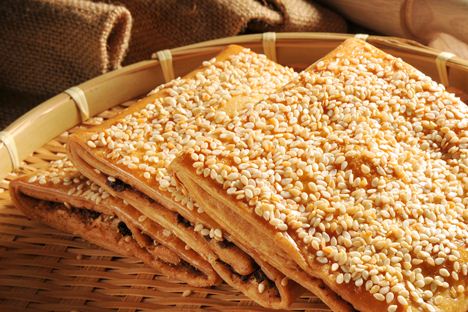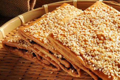 芝麻富含脂肪、蛋白質、醣類、膳食纖維、維生素等多種微量礦物質;黑芝麻口味的燒餅,讓外層白芝麻和內層黑芝麻的香氣互相融合,白芝麻的粒粒分明、黑芝麻搗碎後的綿密細緻,是喜愛芝麻者不可錯過的佳品。