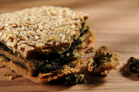 香蒜口味製品一向擁有眾多愛好者,應用到燒餅上一樣擁有迷人特色,吃過香蒜配麵包,就一定也要嚐嚐香蒜搭配燒餅,趕快看香蒜、餅、芝麻三者味道如何契合。
