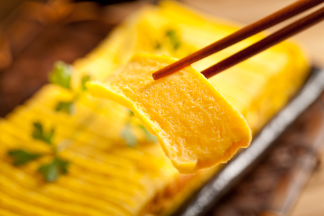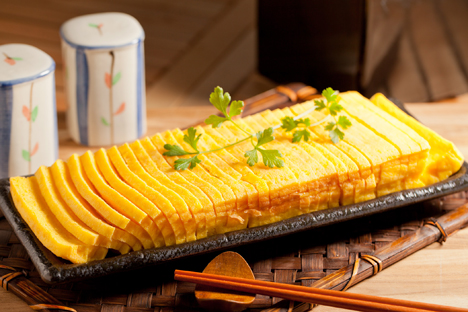 玉子燒又稱「蛋磚」,是一道深具特色的日式料理。【爭鮮】特製的玉子燒,口感細緻綿密,濃醇蛋香與甜鹹滋味搭配得恰到好處。