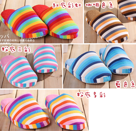 合購介紹 《週六團》馬卡龍珊瑚絨室內拖鞋;繽紛彩色條紋室內拖鞋,12款式:粉色/黃色/藍色/玫紅/藏青/咖啡/灰色/紅底彩虹/粉底多彩/粉底三彩/藍色系/咖啡色系 | 簡易合購