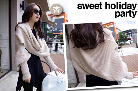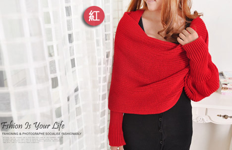 合購介紹 〈週六團》♕韓系針織毛線連袖披風圍巾4色任選:紅色/黑色/杏色/灰色 | 簡易合購