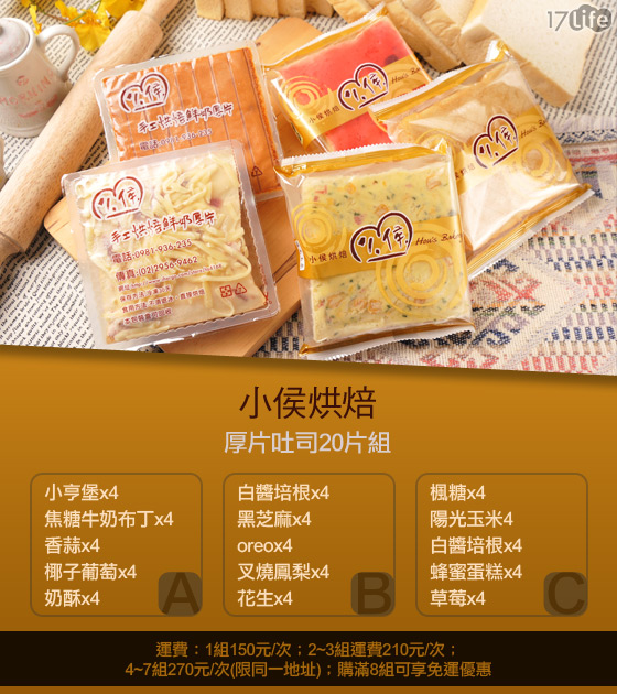 商品名稱:【小侯烘焙】厚片吐司20片組