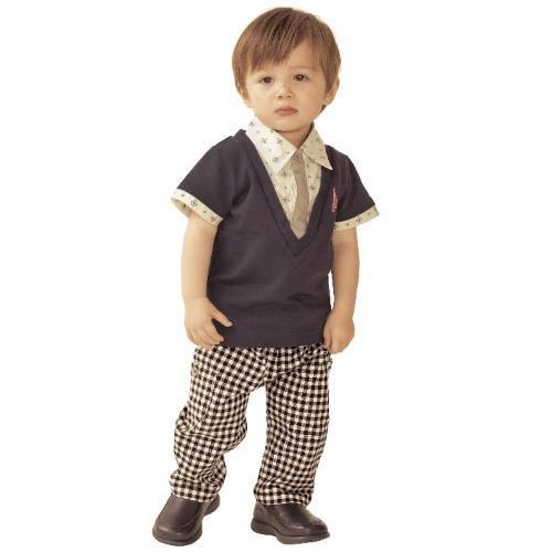 3828 格子小熊蝴蝶結上衣+裙子-卡其