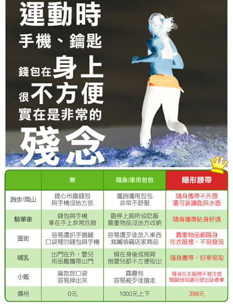 ★ 跑步運動:運動時,沒人幫忙看管貴重物品時