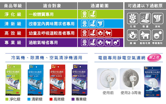 3M淨呼吸靜電空氣濾網的濾菌功效和品質,經過眾多第三公正單位的實際檢測與肯定,3M淨呼吸是全球唯一通過美國肺臟協會(ALA)認證的靜電空氣濾網,可有效改善室內品質,保護全家呼吸道的健康;3M淨呼吸同時經過工研院測試,證明空氣清淨效能已達空氣清靜機的濾淨標準,為市售唯一達此水準的靜電空氣濾網,您家的冷氣機就是空氣清靜機!