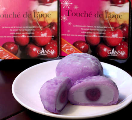 結合元祖自慢的獨家Q皮冷凍技術,低溫保存卻不失口感加上創意無限的手創甜點風潮創始品牌O'SWEET法國星級藍帶主廚Sébastien特調帶有成人專屬酒香氣息,微酸口感,包入整顆美國空運來的頂級黑櫻桃的冰淇淋內餡三重口感完美融合的絕妙享受,甚至加入珍珠粉與膠原蛋白,具備美麗的概念。