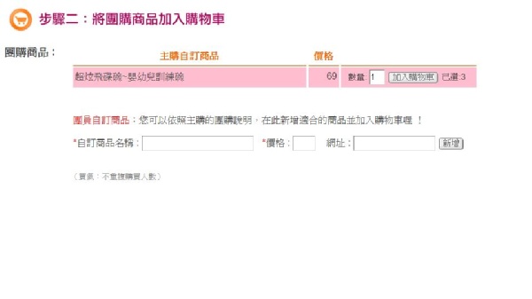 1.先在團購數量打上您所需要的量