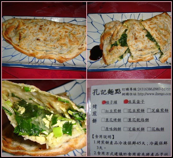 本店生產之韭菜盒子係以純手工製作 , 麵皮經烙烤後無油膩之感 ,
