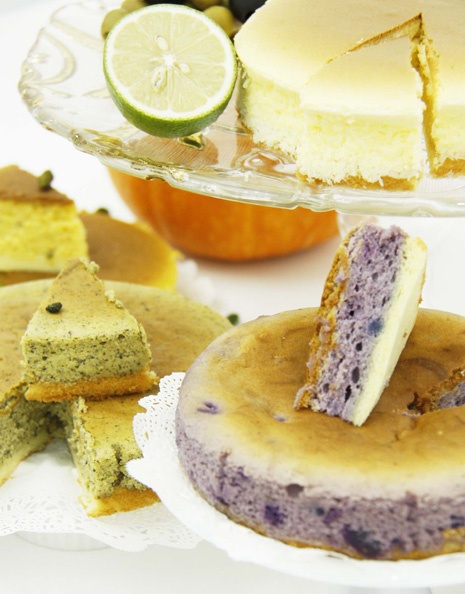 帕莎蒂娜烘焙坊,6吋水浴輕乳酪蛋糕,五種口味:「經典原味」、「花蓮南瓜開心果」、「阿里山烏龍茶」、「墨西哥塞維亞橄欖」、「花蓮無毒紫芋蕃薯」。