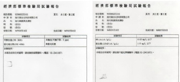 檢測符合食品級之洗劑標準,能有效分解噴霧型農藥的殘留