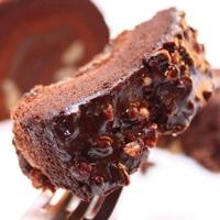 ~好吃金沙巧克力捲外層裹著厚厚的一層巧克力杏仁粒淋醬