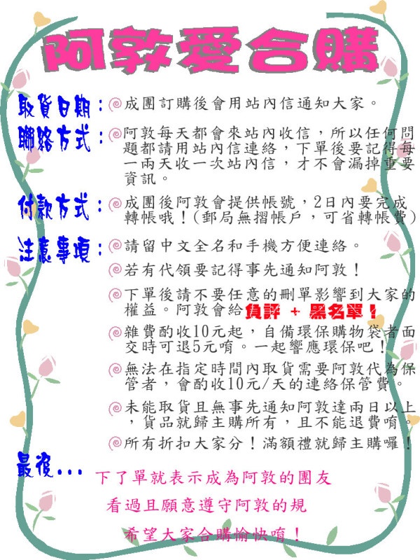 | 取貨方式 | 面交 : [台北] 北投石牌捷運站旁(浮祐彩卷行) [台北] 淡水竹圍民族路上的屈臣氏前 |