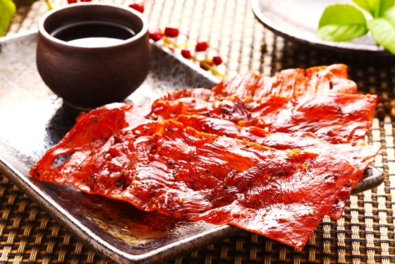 精選新鮮豬後腿肉和獨家醬汁調味製作,味道甜鹹適中,口口彈牙有嚼勁,烘烤得恰到好處,保留適當水份、不乾澀,讓你體會「正港」好味的肉乾。