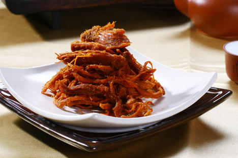 獨家調味秘訣打造出香氣四溢的美味肉絲,紮實的肉絲纖維結合粗細兩種口感,粗肉絲咬勁十足、細肉絲香濃有味,十分適合當點心食用喔!