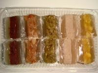 涼糕口味很多,有紅豆、綠豆、、花豆、蓮子、芋頭等五種口味.