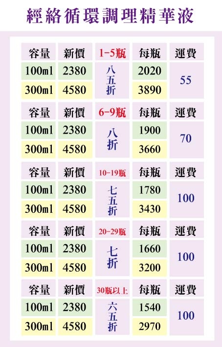 價錢以表格為主