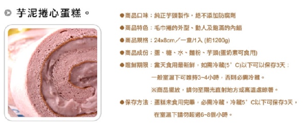 合購介紹 $310元 ★ 芋泥捲心蛋糕,限量ㄛㄛㄛ!╭★ $310元 (6/27星期六 到貨) |