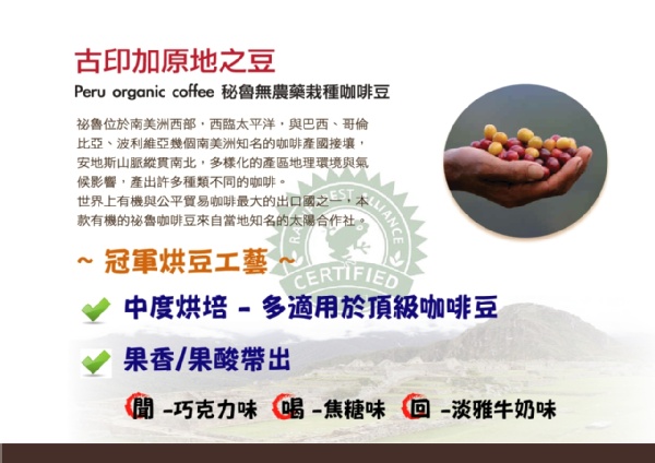 冠軍達人手烘咖啡豆-秘魯~親簽版^^(超值限量,第2包免費) | 台灣瞬達國際流通