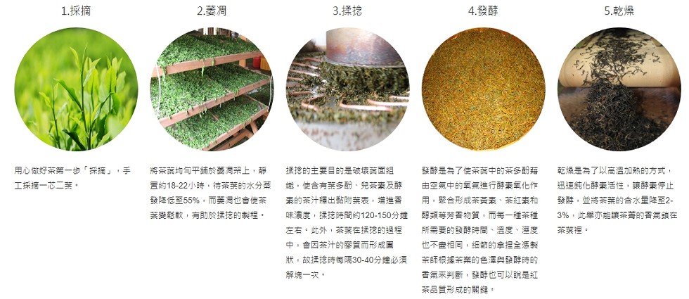 承襲日人種植留下的紅茶園,所栽種之紅茶品種有印度阿薩姆、紅玉(台茶18號)及野生山茶等等。雖然歷經改朝換代,茶樹依然茂盛挺立,努力冒出新芽吐露著茶樹的芬芳。茶樹的年齡平均80~100歲,堪稱為老欉紅茶。