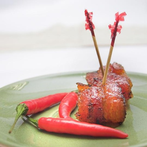 精選豬後腿肉及上等腹脇肉,經除脂、去筋、去皮、去骨、精切成肉片,加上新鮮研磨辣椒及獨特配方,在傳統炭燻工藝下展現肉乾的鮮紅色澤。