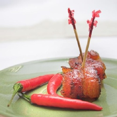 精選豬後腿肉及上等腹脇肉,經除脂、去筋、去皮、去骨、精切成肉片,加上新鮮研磨辣椒及獨特配方,在傳統炭燻工藝下展現肉乾的鮮紅色澤。