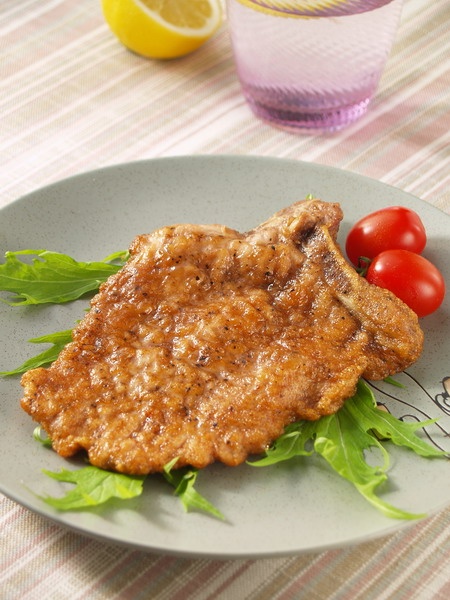 約1~2分鐘,炸或煎至兩面表皮呈金黃色即為香酥可口的豬排。
