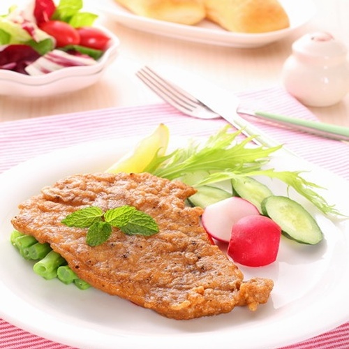待產品解凍後,直接放入約170℃~180℃的熱油中,約1~2分鐘,炸或煎至兩面表皮呈金黃色即為香酥可口的豬排。烹調後請於當日食用完畢。