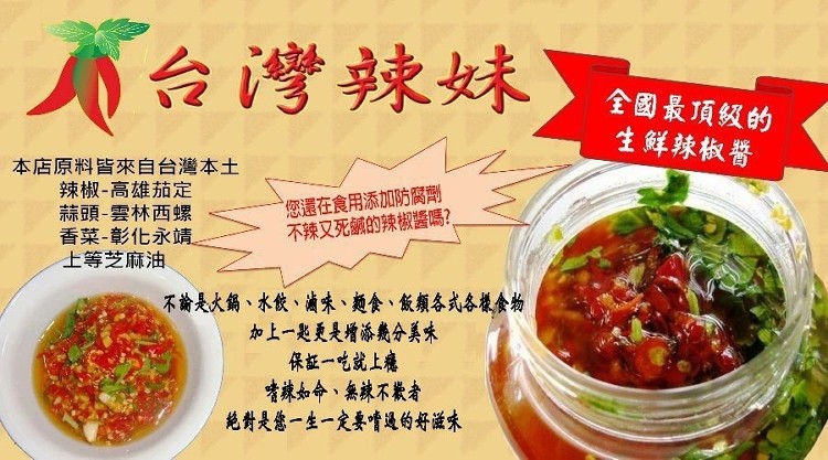 10/9(三)取貨 許願~台灣辣妹~頂級生鮮辣椒醬~菜餚最佳霑醬   | [分享商店] 台灣辣妹頂級生鮮辣椒醬600g